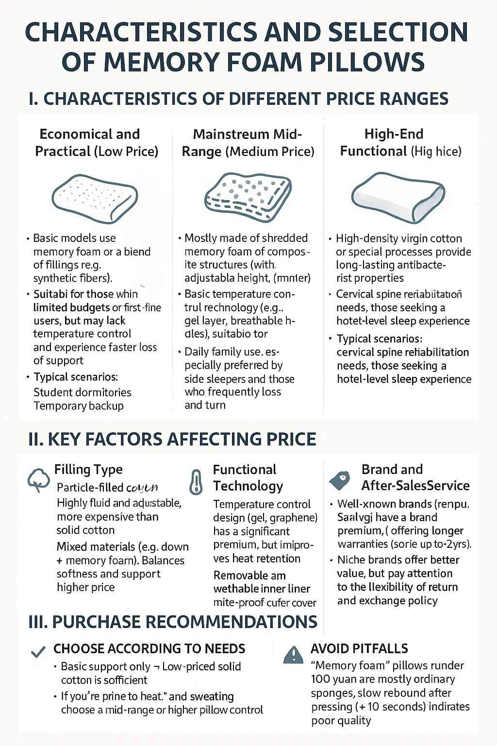 • Gối "Memory foam" dưới 100 tệ chủ yếu là loại bọt biển thông thường; bật lại chậm sau khi nhấn (>10 giây) cho thấy chất lượng kém.